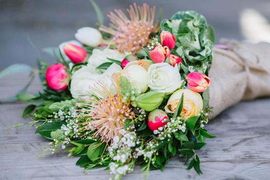 Seasonally available a romantic explosion of flower, fruit and frenzy. These seasonal flowers professionally selected and arranged in one large beautiful bunch. $95 Vase $15