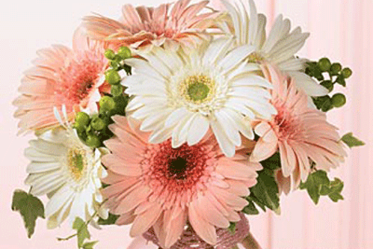 Gerber or white daisy's in a simple modern bouquet. These seasonal flowers professionally selected and arranged in one large beautiful bunch. $45 Vase $15